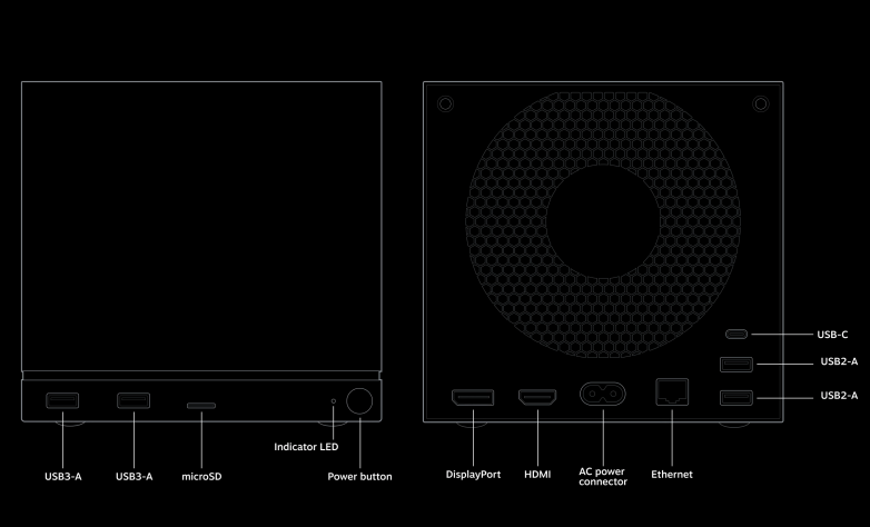 Этот куб стороной в 160 мм и весом в 2,6 кг содержит порты Ethernet, DisplayPort 1.4, HDMI 2.0, один USB-C и четыре USB-A. Также предусмотрена поддержка 2×2 Wi-Fi 6E и Bluetooth 5.3 с отдельной антенной. Беспроводной адаптер для прямого подключения Steam Controller встроен прямо в корпус, как и блок питания. Всего Valve выпустит две версии Steam Machine, отличающиеся вместимостью внутреннего хранилища — 512 Гб и 2 Тб. В обоих случаях объём можно увеличить при помощи карт microSD.