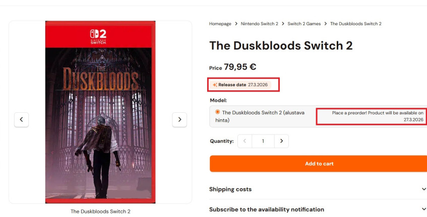 Утечку обнаружили на сайте финского ритейлера Konsolinet. Если верить полученным сведениям, запуск The Duskbloods запланирован на 27 марта. Вскоре страницу игры обновили, и точная дата сменилась на стандартную заглушку в 31 декабря. Тем не менее давно известно, что интернет ничего не забывает, так что находчивые игроки успели сделать скриншоты.