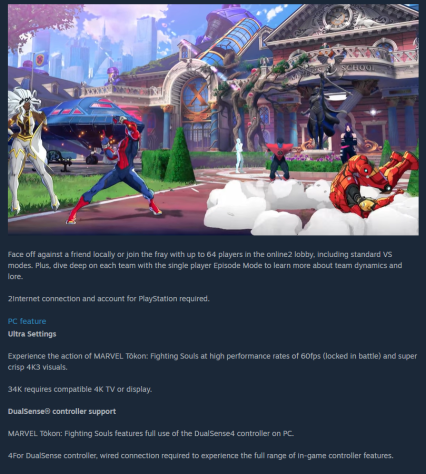 Раньше времени загруженное описание MARVEL Tōkon: Fighting Souls в Steam.