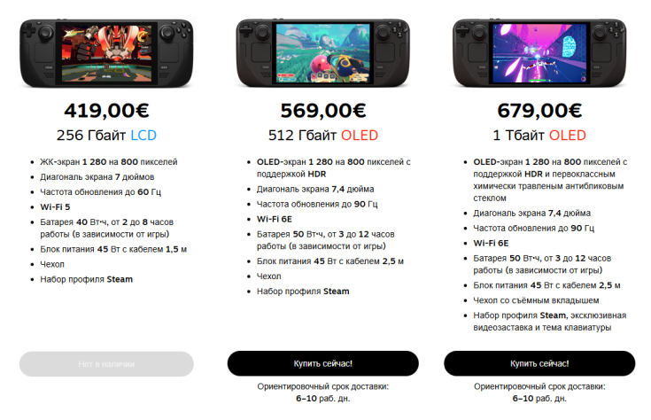 В дальнейшем линейка Steam Deck будет состоять только из OLED-версий. Самая доступная из них — вариант с 512 Гб памяти — стоит 549 долларов. Для сравнения, LCD-модель на 256 Гб продавалась за 399 долларов, что делало её самым бюджетным входом в экосистему портативных ПК от Valve.